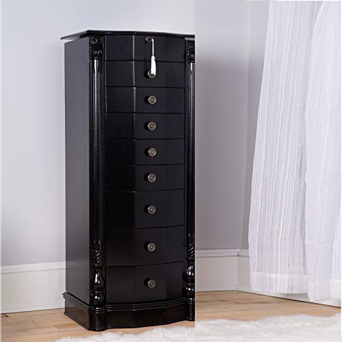 Alveare Home Louisa Standing Locking Jewelry Armoire with Mirror (Black)